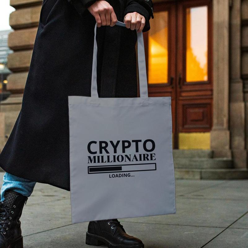 Сумка шопер із принтом "crypto millionaire" сіра|швидка доставка|