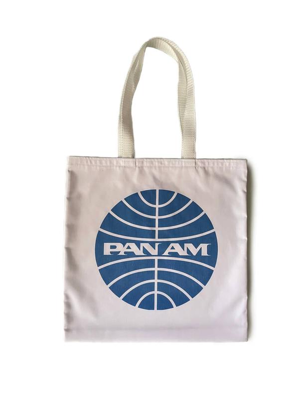 Сумка шоппер pan am. в вінтажному стилі. білий з синім. принт з обох боків.
