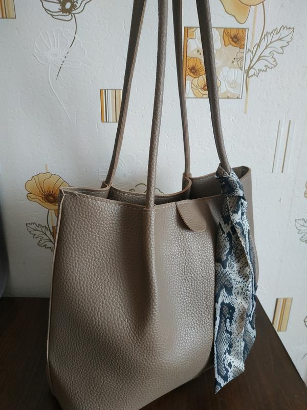 сумка-Шоппер (с платочкой в подарок!!) размер 26*40*12 см ручки 30 см ⭕кольори: ⚫черный, 🟢 хакі, ⚪молочный, 🟤капучино