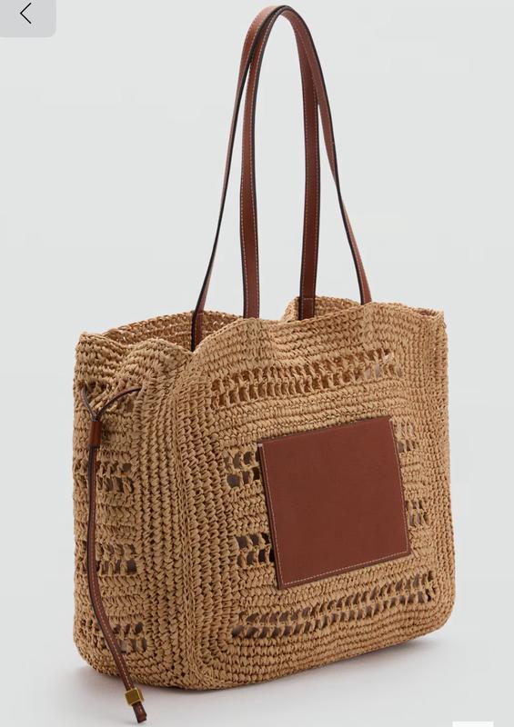 Коричнева солом'яна сумка від Mango. Тканина з натуральних волокон. Стиль шопер. Подвійні ручки. Плечовий ремінь. Внутрішня кишеня. Магнітна застібка. Регульована застібка. Внутрішня підкладка 33.0x32.0x15.0 см (Довжина x Висота x Ширина)