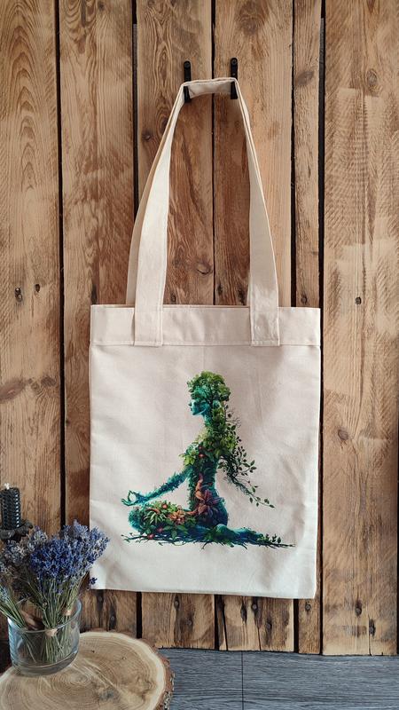 У цій сумці оживає сама Гая — Матінка Земля 🌿 Її образ, сплетений із дерев, квітів і коріння, нагадує нам про нерозривний зв’язок людини з природою. Це не просто аксесуар, а символ єдності з планетою, дбайливого ставлення до світу й пошуку гармонії. ✔ Натуральна саржа — міцна тканина, що сама по собі несе дух природи. ✔ Зручний формат 30х40 см із довгими ручками — практична у використанні, але з глибинним сенсом. ✔ Принт із соковитими барвами створює відчуття живого лісу, що завжди поруч. ✔ Ідеальна для тих, хто шукає баланс, любить медитації, йогу, подорожі або просто цінує красу Землі. Ця сумка — нагадування: ми всі частина великого цілого. 💚🍀 сумка шопер, Матінка Земля, Гая, еко-сумка, шопер із саржі, духовний шопер, символ природи, сумка для йоги, езотеричний стиль, тканинна сумка