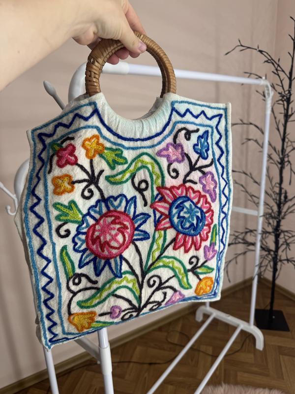 Лляний еко шопер з вишивкою та деревʼяними ручками. Вмісткий та зручний в використанні. Стильно доповнить будь який образ