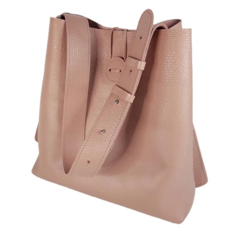 Сумка шоппер жіноча шкіряна, рожева рептилія 1757