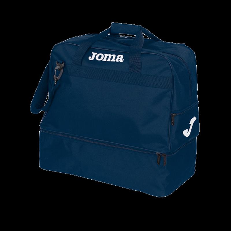 Спортивна сумка Joma TRAINING III MEDIUM виготовлена з високоякісного міцного матеріалу, що відрізняється високою зносостійкістю. Велика сумка з подвійним дном для спортивного інвентарю та спортивного одягу. Оснащена двома короткими ручками для перенесення в руці, плечова шлейка з м'якою підкладкою. Дно сумки має міцну підкладку. На нижній частині сумки є спеціальні ребристі вставки. Висота відділення для взуття - 11,5 см.
