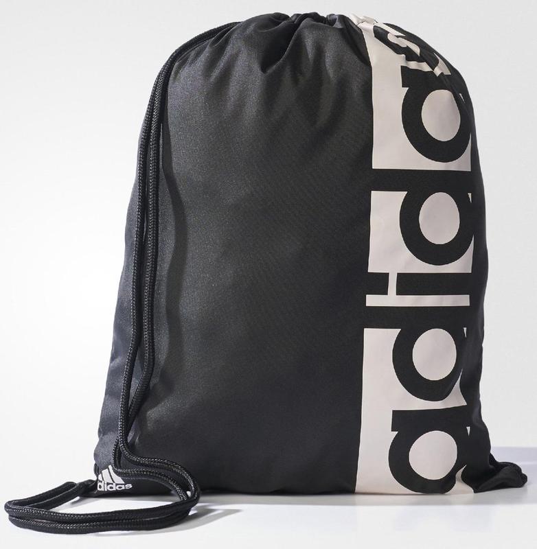 Сумка для взуття, рюкзак, торбинка Adidas Linear Performance Gymsack чорна Опис торбинки: - Сумка-котомка виготовлена з поліестеру. - Затягується шнурками. Характеристики: - Країна виробництва: Індонезія. - Матеріал: поліестер. - Колір: чорний. - Розміри сумки: 47х37см. - Вага: 65 г.