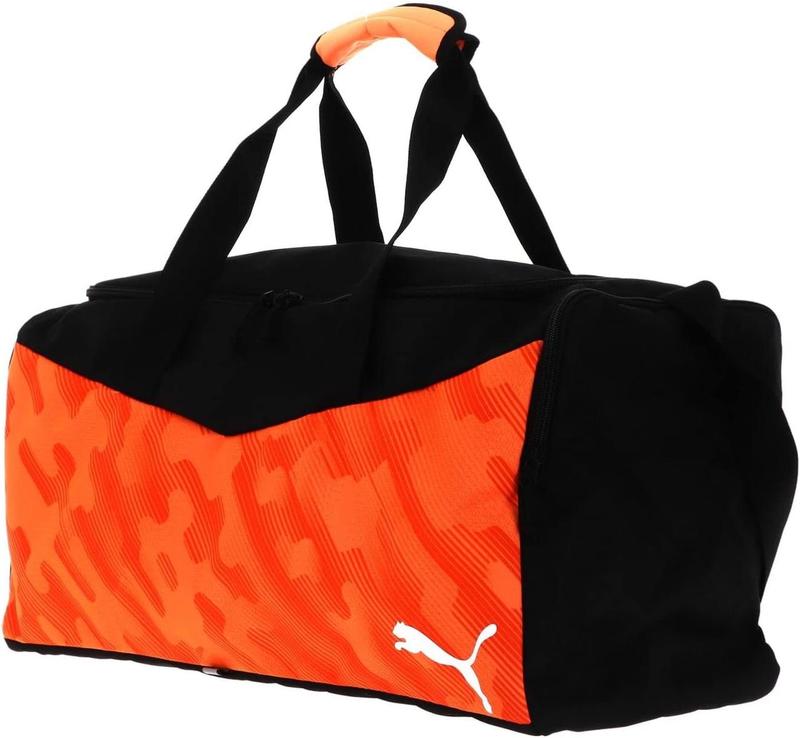 Сумка спортивна 38L Puma Indirise чорна з оранжевим 078599-06 Опис товару: Виріб виготовлений із міцних синтетичних тканин чудової якості, що гарантує довговічність. Основне відділення застібається на двосторонню блискавку. Бічна кишеня на блискавці. Сумку можна носити за допомогою довгого регульованого ременя або двох ручок меншого розміру, що підвищує зручність використання. М'яка основа. Характеристики: Матеріал: поліестер. Колір: чорний із жовтогарячим. Розміри: 54 х 28 х 25 см. Вага: 400 г. Місткість: 38 л. Виробник: Puma, В'єтнам.