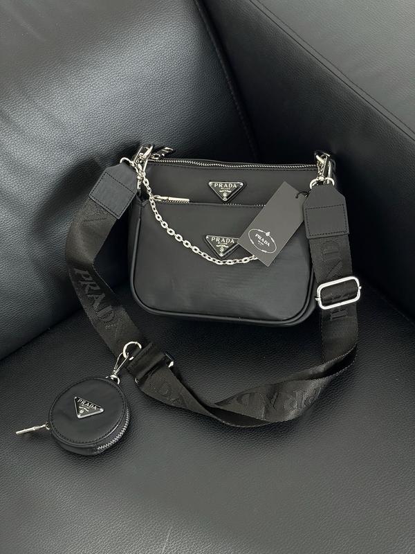 👜 (Арт: 05040) 📐 Розмір: 23 х 16 х 5 см 🧵 Матеріал: Нейлон 🔎 Опис: Сумка виготовлена з нейлону. Є відділення більше і менше, обидва на блискавках. Підкладка всередині текстильна з фірмовим логотипом. Ремінець виконаний із текстилю, з регульованою довжиною. Також у сумки на ремінці є невеликий гаманець на блискавці. Комплектується у брендованій коробці та папері (за додаткову плату можна придбати фірмовий пакет, пильовик та документи).