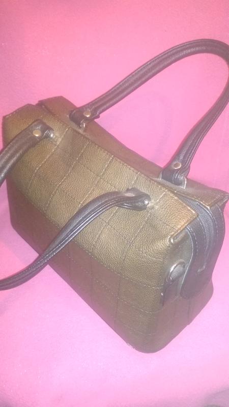 Коричнева з мідним відблиском акуратна сумочка на блискавці. Має три внутрішні відділення,середнє-на блискавці. Зручна і містка. Майже не використовувалася.