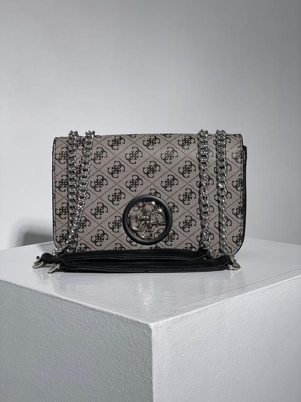 👜 Guess Zadie Grey (Арт: 17031) 💵 Ціна: 1550 грн 📐 Розмір: 22 х 16 х 7 см 🧵 Матеріал: Еко Шкіра 🔎 Опис: Сумка виготовлена з еко шкіри з фірмовим принтом. Усередині одне відділення, також є кишенька на блискавці. Підкладка у сумки із текстилю з брендуванням. Як ремінець - важкі ланцюжки, з ручками з екошкіри. Можна носити як у руці, так і через плече (регулюються ручки). Комплектується в брендовій коробці (за додаткову плату можна придбати фірмовий пакет, пильовик та документи).