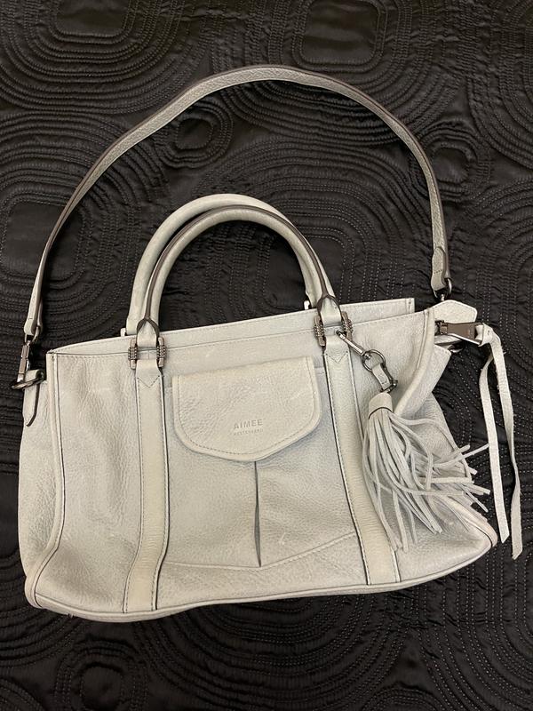 Сумка шкіряна відомого бренду Aimee Kerstenberg блідо - бірюзового кольору. 35* 23*11 см. Сумка нова, сток. Дефект - забруднена 1 ручка( див. Фото).