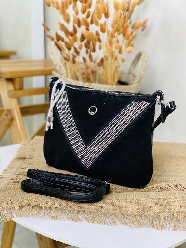 Гарна сумочка із натуральної замші Три кольори в наявності Арт F9077-6 Ціна 649 грн Розмір 20*24 В комплекті два ремінця