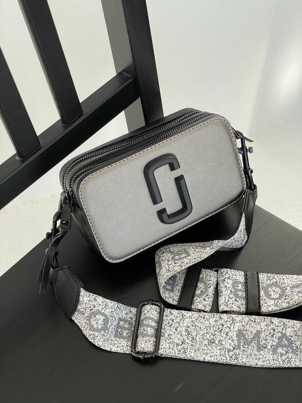 👜 Marc Jacobs Small Camera Bag Silver/Black (Арт: 02097) 💵 Ціна: 1490 грн 📐 Размір: 18 х 10.5 х 7 см 🧵 Матеріал: Еко Шкіра 🔎 Опис: Сумка виготовлена з екошкіри та текстилю, логотип металевий. Усередині два невеликі відділення, підкладка з червоного текстилю, є шкіряна нашивка з фірмовим тисненням. На задній стінці сумки є невелика кишенька. Ремінець на карабінах, шириною 5 сантиметрів і довжиною від 63 до 105 сантиметрів максимум. На карабінах та застібках є фірмові логотипи. Комплектується у брендованій коробці та папері (за додаткову плату можна придбати документи, пильовик та фірмовий пакет).