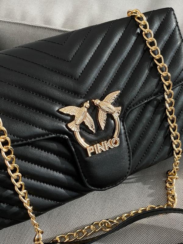 👜 Pinko Classic Love Bag Icon Enamel Pin (Арт: 08004) 💵 Ціна: 1450 грн 📐 Розмір: 26 х 17 х 8 см 🧵 Матеріал: Еко Шкіра 🔎 Опис: Сумка виготовлена з чорної еко шкіри. Усередині два відділення, також у перегородці є відділення на блискавці. Підкладка всередині - текстильна. В якості ремінця - ланцюжок з ручкою з екошкіри. Комплектуються у не брендованих коробках.