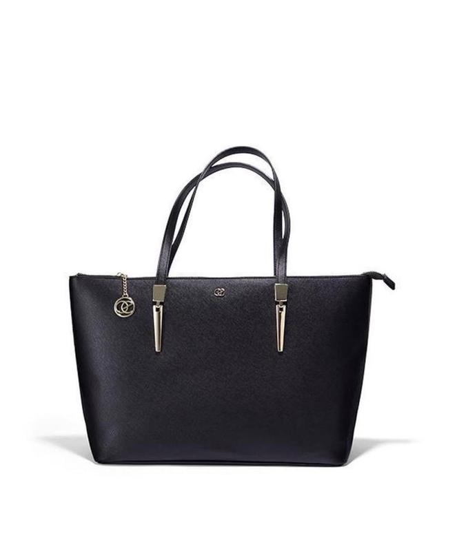 Класична чорна сумка, з елегантними металевими деталями золотистого кольору, повністю відповідає стриманому шведському стилю. Матеріали: ПУ, метал, поліестер. Розміри: 35 x 15.5 x 26.5 см, висота ручки 23