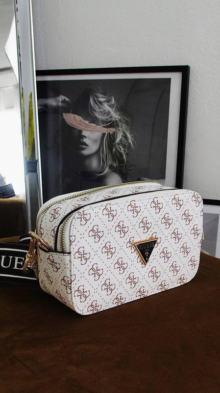 The Snapshot Bag White V2 Арт: 0047 Розмір: 21 х 12,5 х 7 см Матеріал: еко шкіра, текстиль Люкс якість! Сумка зроблена з еко шкіри і текстилю. Шкіра покрита монограмним малюнком бренду. Всередині два відділення. На задній стінці є невелика кишеня. Пояс сумки на карабінах. Ширина - 5 см. Довжина регулюється і становить 64-105 см. Комплект: пакувальний папір і біла не брендова коробка. Додатковий комплект за 50 грн: брендований пакет та фірмовий пильник.