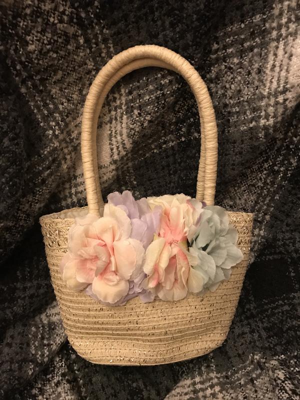 Высота 14 см+14 см ручки. Ширина 21 см. На кнопке, с подкладкой