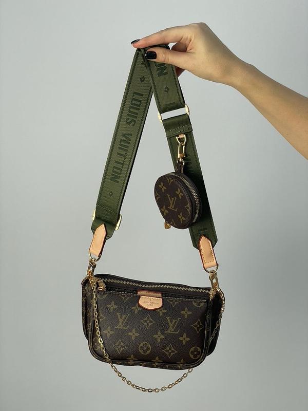 👜 Louis Vuitton Pochete Multi Brown Green Belt (Арт: 01086) 📐 Розмір: 22 х 14 х 4 см 🧵 Матеріал: Еко Шкіра 🔎 Опис: Сумочка виконана з коричневої екошкіри. Широкий пояс із текстилю регулюється від 82 сантиметрів до 117 см. Також на поясі є невеликий круглий гаманець на блискавці для різної дрібниці. Декоративний ланцюжок на карабінах із легковагого металу. Сумка з двох частин, у кожній з яких одне велике відділення (переважно є так само невелика кишенька всередині). Внутрішня підкладка із щільного текстилю. Комплектується в брендованій коробці та папері (за додаткову плату можна придбати пакет, пильовик і документи).