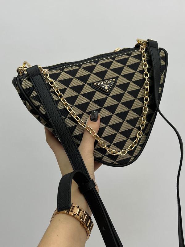 👜 Prada Embroidered Triangle Silver (Арт: 05048) 💵 1890 грн 📐 Розмір: 26 х 18 х 10 см 🧵 Матеріал: Текстиль та Екошкіра 🔎 Опис: Сумка виконана із двох частин (можна сказати у вас 2 сумки). Одна половина виконана із щільного текстилю із фірмовим малюнком. Інша повністю із чорної еко шкіри. Усередині зроблені повністю однаково, - це трикутне відділення з невеликою кишенькою та металевим значком. Підкладка всередині сумок із якісного текстилю. Ремінець із чорної еко-шкіри, з невеликим діапазоном регулювання. Також є ланцюжок на карабінах. Комплектується у брендованій коробці та папері (за додаткову плату можна придбати документи, пильовик та фірмовий пакет). Для замовлення пишіть 💌 #prada