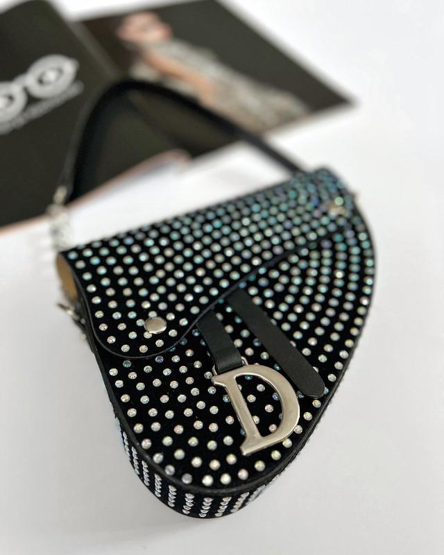 Матеріал: замш+еко-шкіра Розмір: 22•17•6 см Нова ідеальна сумочка з камінчиками в стилі Dior Saddle. Гарно переливається. В комплекті є подовжений ремінець.