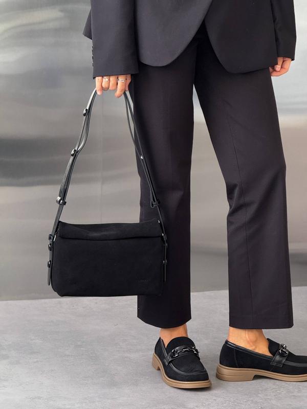 Код 11842 Така бажана преміальна сумка ™️ LONZA Колір: ЧОРНИЙ Матеріал: НАТУРАЛЬНА ЗАМША Всередині: 2 відділення (одне на блискавці) + 3 кишені Підклад: текстиль (коттон) Доповнена двома знімними об'ємними ручками з гладкої натуральної шкіри Виробник - TM LONZA (КНР) Довжина: 24 см Ширина (глибина): 10 см Висота: 17 см Вага - 500 г Розмір сумки: середня Вміщується формат А4 - ні Закривається на замочок та магніт ▫️2980 грн