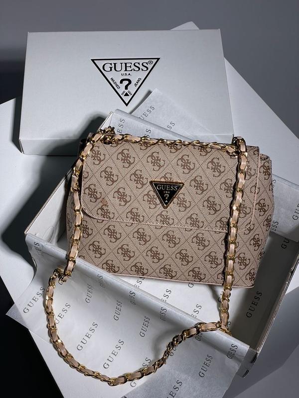 👜 Guess Amara Beige (Арт: 17046) 💵 Ціна: 1590 грн 📐 Розмір: 25 х 17 х 7 см 🧵 Матеріал: Еко Шкіра 🔎 Опис: Сумка виготовлена з еко шкіри з фірмовим принтом. Усередині одне суцільне відділення, є невелика кишенька на блискавці. Підкладка у сумки із текстилю з фірмовим малюнком. Закривається сумка на двох магнітах із двох сторін. Ремінець на золотистому ланцюжку з вплетеним ременем із еко-шкіри. Комплектується у брендованій коробці та папері (за додаткову плату можна придбати документи, пакет, пильовик).