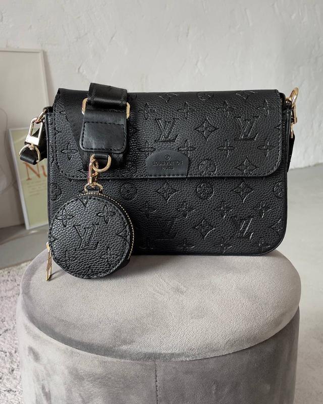Louis Vuitton Multi Pochette Black Розмір: 24 х 19 х 8 см Опис: Люкс якість! Сумка зроблена з чорної еко шкіри з монограмним витисненням логотипу LV. Ремішок сумки регулюється, довжина від 78 до 115 см, на ньому є невелика кишенька круглої форми для різних дрібниць. Всередині сумки одне суцільне відділення з невеликою кишенькою.