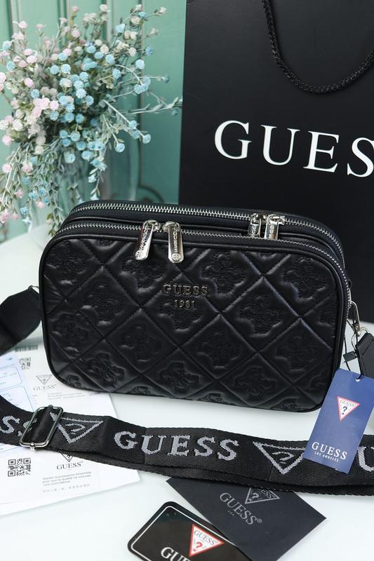 Сумочка Guess кросс-боди ЛЮКС КОД: черный 20272-1 черный стеганный 20272-2 черный стеганный мягкий 20272-3 Размер : 26*16*8СМ Материал - «Эко» кожа Два головных отделения на белье. Благодаря блузкам которые заходят на боковые стенки сумочки, отделения открываются широко, что позволяет комфортно использовать сумочку. В середине одно дополнительное отделение с логотипом также на блузке. Между основателями карманами, одно открытое отделение на магните. На обратной стороне дополнительный карман. Фурнитура брендируется - из металла. Подкладка брендируется. Сумочка украшена фирменным логотипом Guess. Ремешок широкий регулируется - длина максимальная 130см