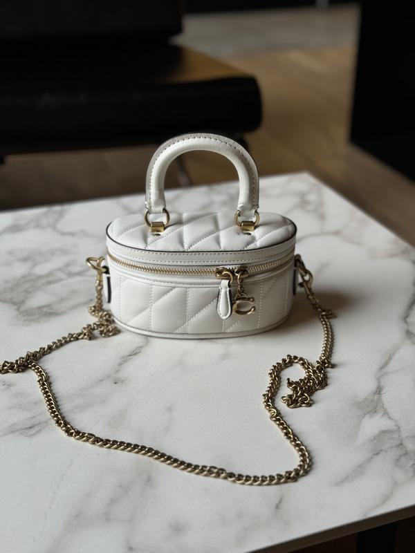 Арт: 99715 3100 грн ⏺ Розмір: 17 х 9 х 9 см ⏺ Матеріал: Шкіра ⏺ Опис: Сумка виготовлена з гладкої шкіри, з простроченням. Всередині одне невеличке відділення. Підкладка у сумки з гладкої шкіри. Зачиняється відділення на застібці. Якісна металева фурнітура з усіма брендовими написами. Є коротша ручка для носіння у руці та більш довгий ланцюжок з фіксованою довжиною - для носіння через плече. Комплектується у фірмовій коробці та пильовику.
