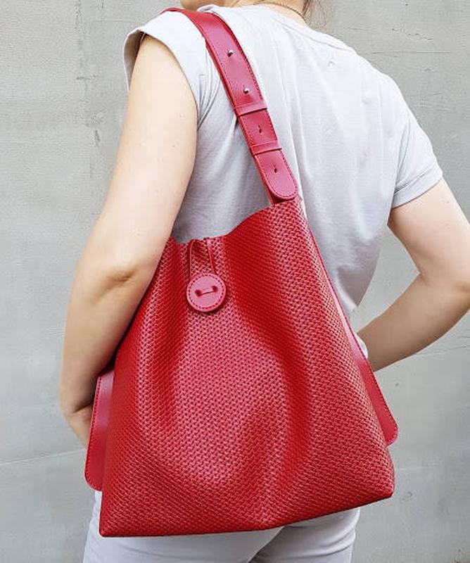 Материал: натуральная кожа Размер, см: 32 x 11 x 33 (ДxШxВ) Сумка закрывается на декоративную пуговицу. Внутри специальное отделение - футляр с карманом на молнии, которое крепится к ручке сумки с помощью кожаного ремешка. Имеет широкий регулируемый плечевой ремень. Фурнитура - серебро Цвет- красная Способы доставки: Нова Пошта Способ оплаты: -100% оплата на карточку Приватбанка, Монобанка -наложенный платеж (предоплата 250 грн)