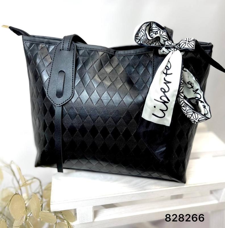 828266 Новинка ❤️🔥 Сумка з хусткою текстурна Розмір: 27/23/10 Матеріал: екошкіра Колір: Чорна На змійці з хусткою