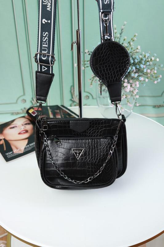 Сумка GUESS 3 в 1 рептилія Код: чорна рептилія 20109-1 была рептилія 20109-2 Матеріал: Еко-шкіра Розмір великого клатча 24х15х5 см Розмір меншого 17х12х5 см. Діаметр круглої сумочки 9 см. У комплекті довгий ремінь, максимальна довжина якого 140 см.