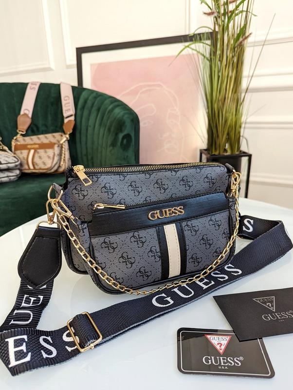 Сумка GUESS 2 в 1 клатч через плечо с линейной вставкой Код: бежева+ бежева вставка 20275-1 бежевая + черная вставка 20275-2 коричнева + коричнева вставка 20275-3 свет черная+ черная вставка 20275-4 серая + вставка 20275-5 коричневая + черная вставка 20275-6 белая+черная вставка 20275-7 черная+черная вставка 20275-8 бежева+коричнева вставка 20275-9 Материал: Эко кожа Сумочка без подкладки, состоит из двух отдельных сумочек. Размер большого клатча 23х15х4 см Размер меньшего 19х10х4 см. В комплекте длинный ремень, максимальная длина которого 145 см.