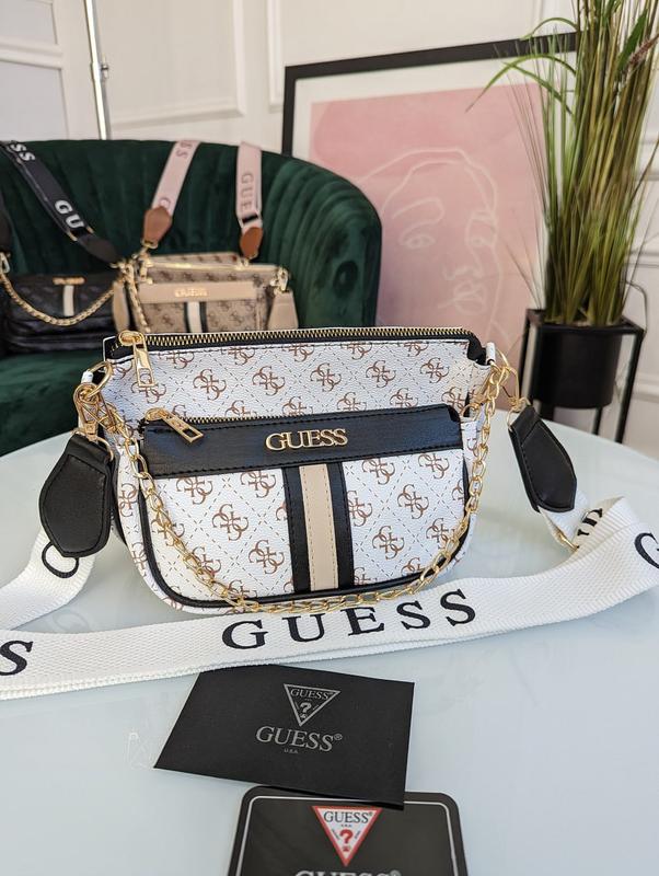 Сумка GUESS 2 в 1 клатч через плече з лінійною вставкою Код: бежева+ бежева вставка 20275-1 бежева+ чорна вставка 20275-2 коричнева + коричнева вставка 20275-3 світло чорна+ чорна вставка 20275-4 сіра+чорна вставка 20275-5 коричнева+ чорна вставка 20275-6 біла+чорна вставка 20275-7 чорна+чорна вставка 20275-8 бежева+коричнева вставка 20275-9 Матеріал: Еко-шкіра Сумочка без підкладки, складається з двух окремих сумочок. Розмір великого клатча 23х15х4 см Розмір меншого 19х10х4 см. У комплекті довгий ремінь, максимальна довжина якого 145 см.