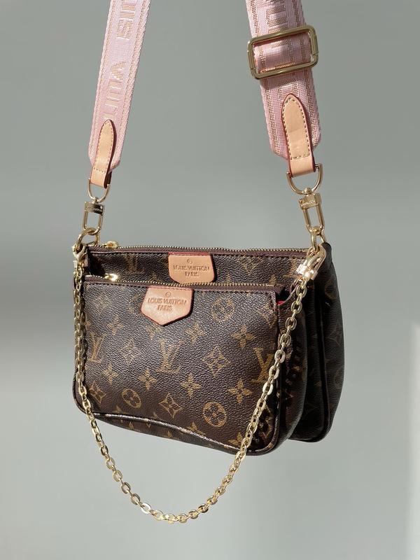👜 Louis Vuitton Pochete Multi Pink Belt (Арт: 01016) 📐 Размер: 23 х 16 х 5 см 🧵 Материал: Эко Кожа 🔎 Описание: Сумочка изготовлена из коричневой эко-кожи с фирменной канвой лв. Широкий пояс розового цвета из текстиля регулируется от 82 сантиметров до 117 см. Также на поясе есть небольшой круглый кошелек на молнии для различной мелочи. Декоративная цепочка на карабинах из легковесного металла. Сумка из двух частей, в каждой из которых одно большое отделение (преимущественно есть так же небольшой кармашек внутри). Внутренняя подкладка из плотного текстиля черного цвета. Комплектуются в брендированных коробках и бумаге (за дополнительную плату можно приобрести фирменный пакет, пыльник и документы).