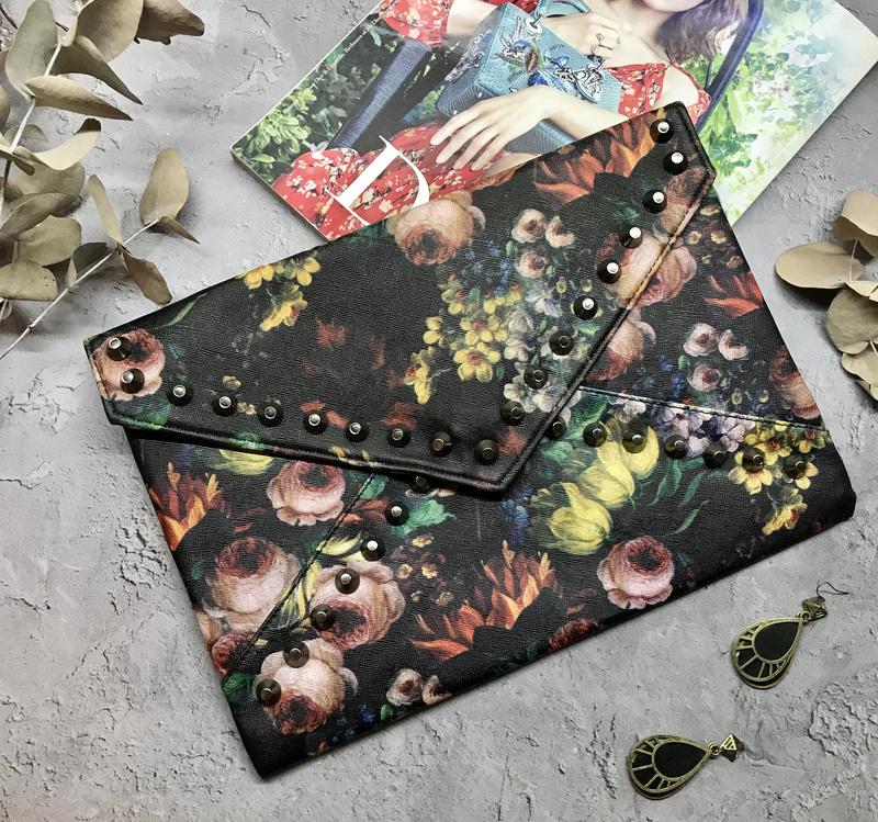 Є доп. довга ручка, металеві заклепки, гарна еко шкіра, дизайн квіти та черепи, заміри в лс