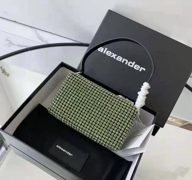 Сумка в камінцях Wang Код 7784 Кольори : чорна, зелена, золота На короткій ручці букви Wang. Довгий ланцюжок в комплекті не йде. В комплекті запасні стразы. Великий відділ на блискавці, є два маленькі відділи для карток. Розміри 19*9*8см Країна виробник Китай🇨🇳