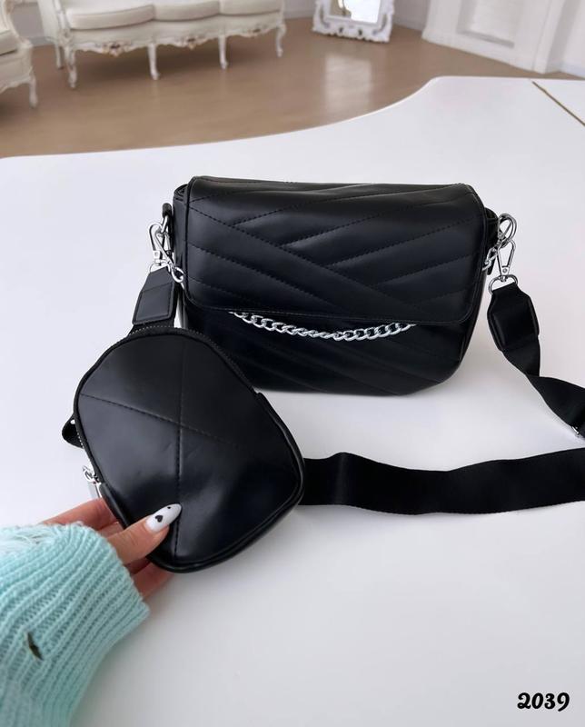 Код 2039 Ціна 1050 грн Сумочка з гаманцем на широкому ремені Всередині один загальний відділ , є кишені для дрібниць Розмір 24*18 см
