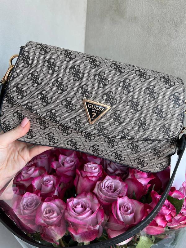 Guess Cordelia Logo grey/black Арт. 2018 • Розмір : 26x14 • Матеріал : еко шкіра • Металева фурнітура • Один відділ • В комплекті 2 ремінця • Всередині лого • Додаткова кишеня всередині