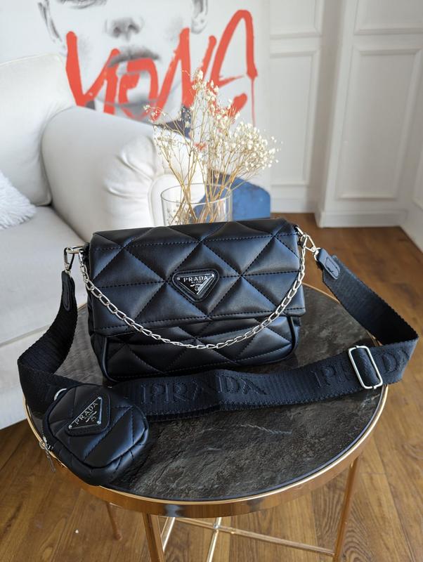 Сумка жіноча Prada 2 в 1 в чорному та молочному кольорі код чорний 20224-1 молочний 20224-3 • Колір фурнітури срібло • Матеріал еко-шкіра • В середині одне відділеня та карман на близкавці, є підкладка. • Розмір сумки 22 х 17 х 7 см • Міні гаманець 9 х 6 х 3 • Плечовий ремінь 120 см