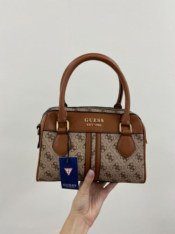 👜 Guess Mini Speedy Brown (Арт: 17078) 📐 Розмір: 25 х 19 х 13 см 🧵 Матеріал: Еко Шкіра 🔎 Опис: Сумка виготовлена з гладкої еко шкіри з фірмовим малюнком. Усередині одне велике відділення, є невелика кишенька на застібці. Підкладка всередині сумки текстильна. У комплекті також є довгий регулюємий ремінець для носіння через плече. Також на ремінці є невеличкий гаманець. Комплектується у брендованій коробці та папері (за додаткову плату можна придбати документи, пильовик та фірмовий пакет).