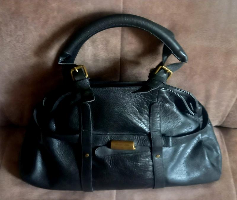 Великолепная вместительная и в то же время элегантная кожаная сумка Mandarina Duck (Италия). Кожа плотная отличного качества. На хлопковой подкладке черного цвета. Укрепленные ручки, длина которых может регулироваться. Размеры: ширина 54 (низ) - 39 (верх) х высота 34 х дно 12 см. Mandarina Duck – это итальянский бренд, который предлагает инновации и комфорт, учитывая совершенство итальянского дизайна и высокого качества используемых материалов. Ассортимент продукции компании, включает не только сумки. Но сумки практически совершенны.