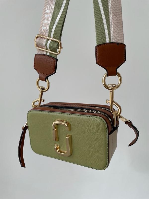 👜 Marc Jacobs Small Camera Bag Green/Brown (Арт: 02123) 💵 Цена: 1550 грн 📐 Размер: 18 х 10.5 х 7 см 🧵 Материал: Эко Кожа 🔎 Описание: Сумка изготовлена из экокожи и текстиля, логотип металлический. Внутри два небольших отделения, подкладка из красного текстиля, есть кожаная нашивка с фирменным тиснением. На задней стенке сумки есть небольшой кармашек. Ремешок на карабинах, шириной 5 сантиметров и длиной от 63 до 105 сантиметров максимум. На карабинах и застежках имеются фирменные логотипы. Комплектуется в брендированной коробке и бумаге (за дополнительную плату можно приобрести документы, пыльник и фирменный пакет).
