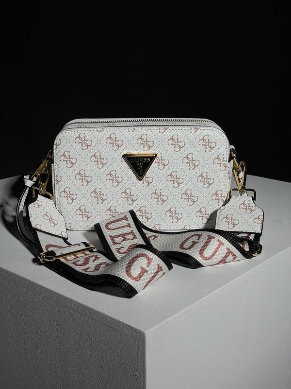👜 Guess Zippy Snapshot White (Арт: 17068) 📐 Розмір: 21 х 12.5 х 7 см 🧵 Матеріал: Еко Шкіра 🔎 Опис: Сумка виготовлена з еко шкіри з фірмовим принтом. Усередині два відділення, на блискавках. Підкладка всередині сумки з чорної еко шкіри. Ремінець текстильний з фірмовими написами, регулюється від 63 до 105 сантиметрів у довжину. Комплектується у брендованій коробці та папері (за додаткову плату можна придбати документи, пильовик та фірмовий пакет).