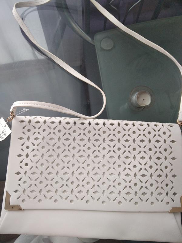 біла, клапан з перфорацією, 32/22,, довгий ремень, є нюанс на тильній стороні ( див. ост. фото) , плями розмиті , замінник кожи