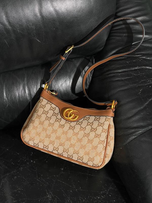 👜 Gucci Aphrodite Shoulder Bag Brown Textile (Арт: 13046) 📐 Розмір: 26 х 16 х 8 см 🧵 Матеріал: Текстиль 🔎 Опис: Сумка текстильна, з брендовою вишивкою, також є елементи з еко шкіри. Довга ручка також з еко шкіри, довжина 80 см, не регулюється. Усередині одне відділення, є також маленька кишеня на застібці. Підкладка у сумки з приємного на дотик текстилю, також є вставки з еко шкіри з брендовим тисненням. Комплектується у брендованій коробці та папері (за додаткову плату можна придбати фірмовий пакет, пильовик та документи).