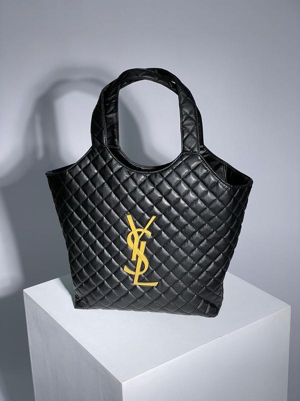 👜 Yves Saint Laurent Icare Maxi Shopping Bag in Quilted Lambskin (Арт: 06024) 📐 Розмір: 54 х 40 х 15 см 🧵 Матеріал: Еко Шкіра 🔎 Опис: Сумка виконана з чорної екошкіри із простроченням. На лицьовій стороні великий металевий логотип. Усередині одне велике відділення, є кишенька на блискавці. Сумку можна зробити менш широкою за допомогою ланцюжка. Підкладка всередині сумки з червоного текстилю. Комплектується у не брендованій коробці.