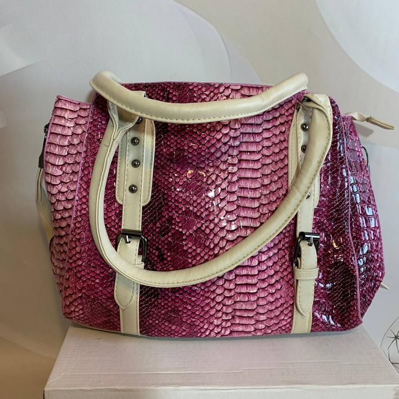 Сумки дуже гарні з еко шкіри. Зручні, є велика ручка яка пристібається по вашому бужанню. Вони середнього розміру. Кишені по бокам вони мають. Розмір довжина 23 см ширина 33см