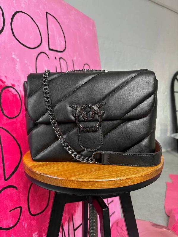 Pinko Puff Black Logo Bag Арт: 0085 Ціна: 1650 грн Розмір: 25 x 19 x 11 см Матеріал: еко шкіра Опис: Люкс якість! Сумка виконана з еко шкіри. Всередині одне велике відділення, також є маленька кишенька. Підкладка всередині сумки із якісного чорного текстилю. Ремінець - ланцюжок з ручками з еко шкіри на який нанесений логотип бренду. Ремінець регулюється. Безкоштовновний комплект: брендова коробка + пакувальний папір. Платний комплект +260 грн: брендовий пакет, пильовик та набір документів.