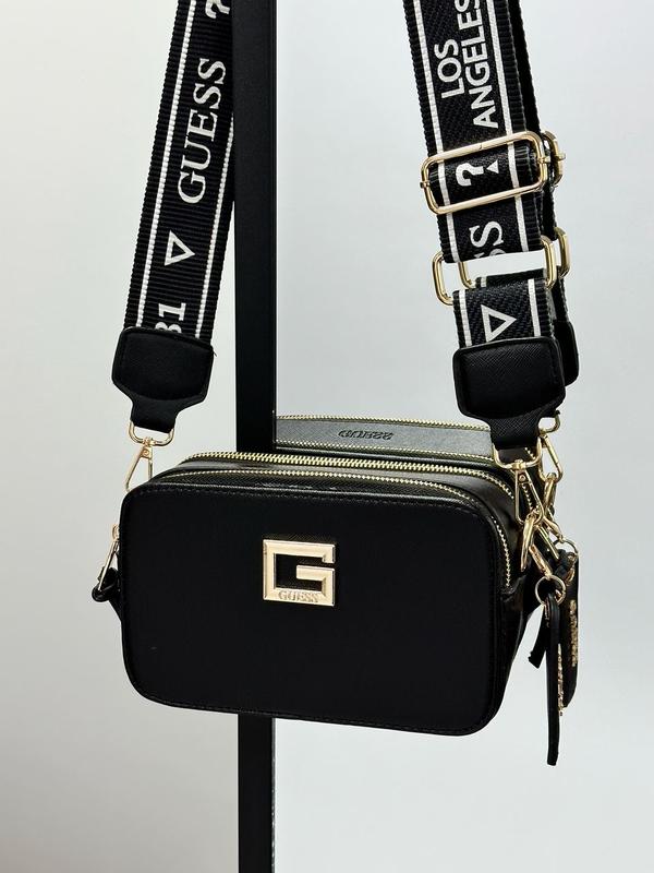 👜 Guess Snapshot Black/Gold (Арт: 17095) 📐 Розмір: 21 х 12.5 х 7 см 🧵 Матеріал: Еко Шкіра 🔎 Опис: Сумка виготовлена з чорної еко шкіри. Усередині два відділення, на блискавках. Підкладка всередині сумки з чорної еко шкіри. Ремінець текстильний з фірмовими написами, регулюється від 63 до 105 сантиметрів у довжину. Комплектується у брендованій коробці та брендованому папері (за додаткову плату можна придбати документи, пильовик та фірмовий пакет).