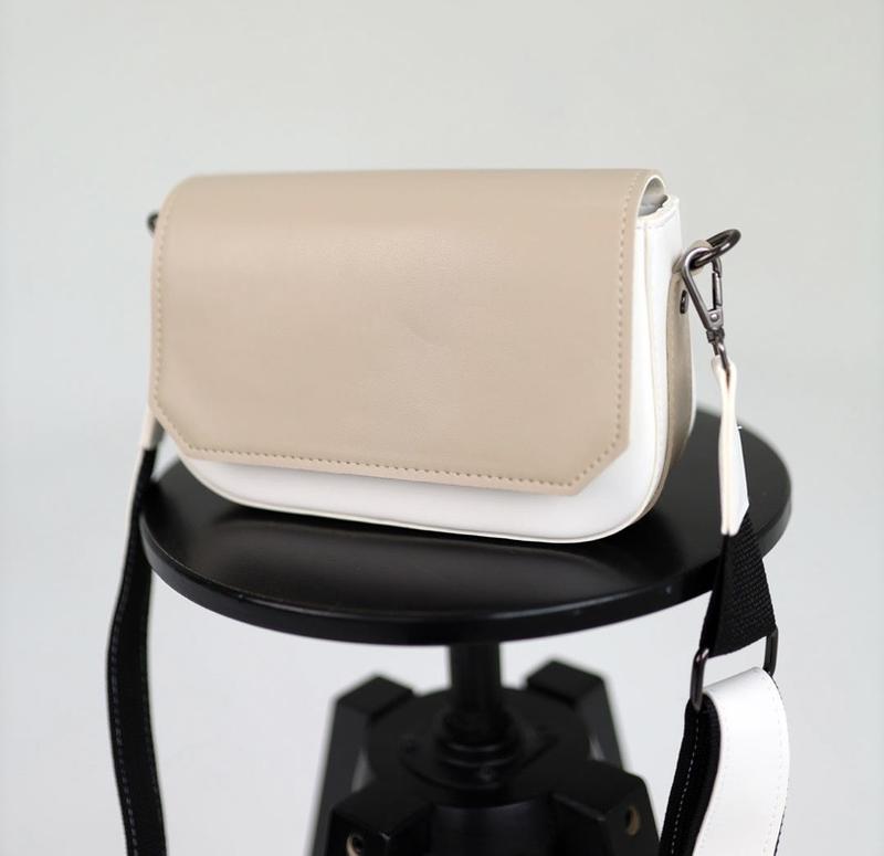 Стильна жіноча сумка в біло-бежевому поєднанні. Сумка через плече в мінімалістичному стилі, закривається на магнітних застібках. Всередині одне основне відділення. В наборі один довгий ремінець, що регулюється. Склад: екошкіра Тип: сумка Колір: білий бежевий Розміри: 21 x 13 x 6 см Кількість відділень: 1 Кишеня всередині: 1 Кількість ременів: 1 Матеріал підкладки: текстиль Матеріал: Еко шкіра - замша Колір: Білі/ Бежеві Сезон: Весняні-Осінні Стиль: Повсякденний